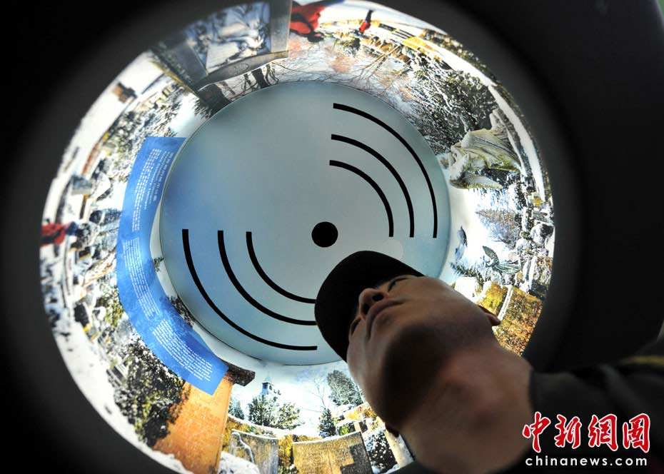 圖為德國館內的360度環(huán)繞視聽展示。 中新網(wǎng)記者 王紅綱 攝