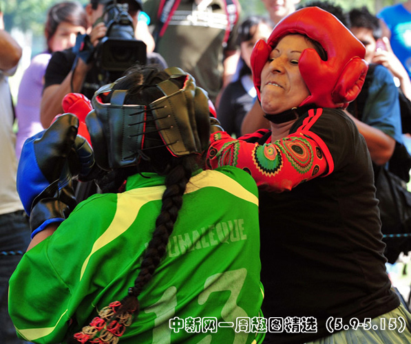 5月13日,秘魯利馬高地舉辦的傳統(tǒng)食品博覽會(huì)上,兩名安第斯農(nóng)民婦女穿著象征秘魯和玻利維亞的裙子同臺(tái)搏擊妙趣橫生。圖片來(lái)源:中國(guó)新聞網(wǎng)>>點(diǎn)擊觀看詳細(xì)內(nèi)容
