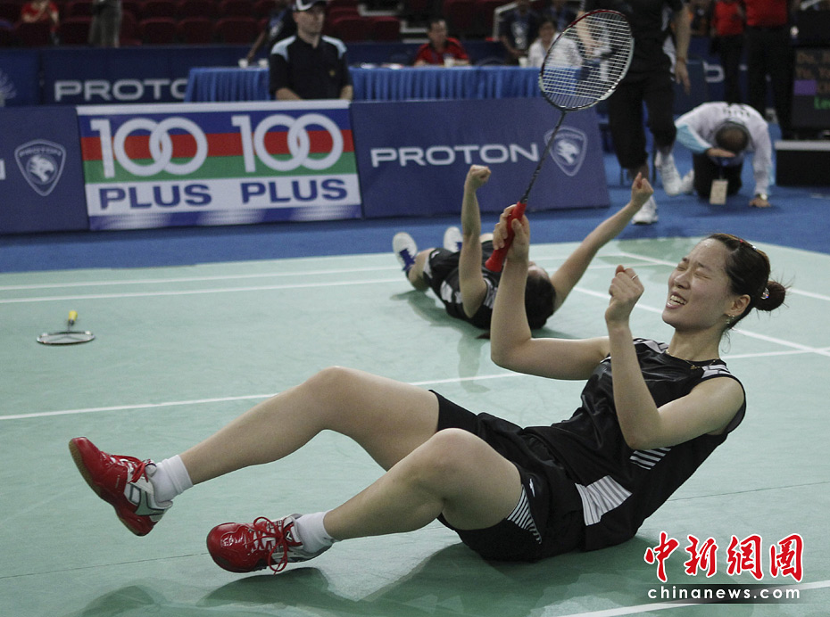 5月15日,在馬來西亞吉隆坡舉行的2010年尤伯杯女子羽毛球團體賽決賽中,中國隊(黃衣)以1比3負于韓國隊,獲得亞軍。圖片為韓國隊在歡慶勝利。圖片來源:中國新聞網(wǎng)