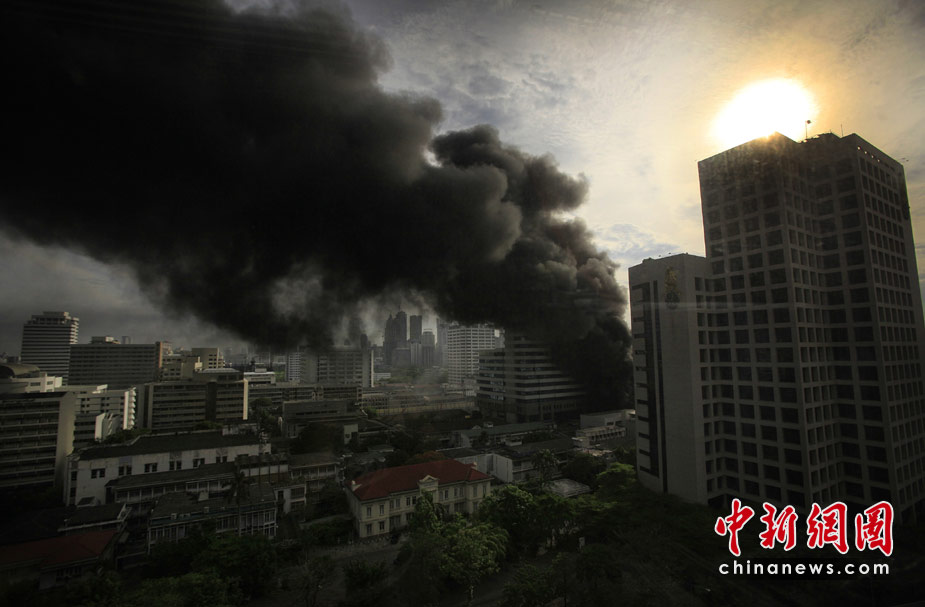 19日,發(fā)起驅(qū)散行動(dòng)的泰國(guó)軍方突破了反政府“紅衫軍”示威者在曼谷市中心所筑路障,進(jìn)入其營(yíng)地內(nèi),雙方爆發(fā)槍戰(zhàn)。目擊者稱,已有至少9人受傷,多數(shù)是被槍擊中。 圖為“紅衫軍”成員在曼谷一所醫(yī)院附近集會(huì)并燃燒輪胎。