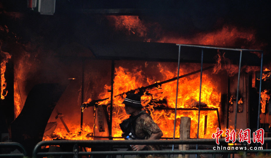 泰國軍方19日清場(chǎng),希望將陷入內(nèi)戰(zhàn)邊緣的曼谷拯救出來,雖然紅衫軍節(jié)節(jié)敗退,但有激進(jìn)分子未肯罷休,四處放火,電視臺(tái)、股票交易所、電力公司、幾間銀行、商場(chǎng)戲院都遭殃,商場(chǎng)和便利店亦成為搶掠目標(biāo)。據(jù)報(bào)曼谷有27處地方起火,泰國最大的商場(chǎng)Central World、Siam Square和Siam Paragon三大購物中心被縱火,其中Central World燒通頂,據(jù)報(bào)快將倒塌。