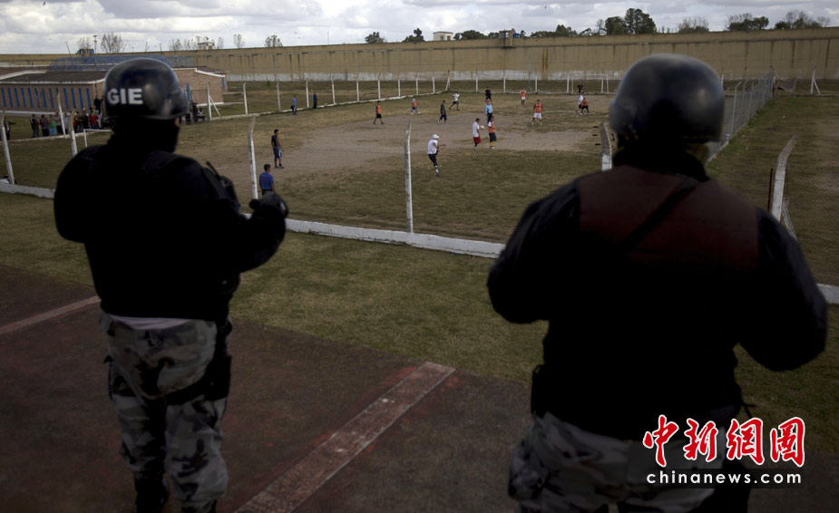 5月18日,阿根廷布宜諾斯艾利斯,作為一項(xiàng)文化活動(dòng)的一部分,阿根廷政府在世界杯到來(lái)之前組織幾家監(jiān)獄進(jìn)行足球比賽。