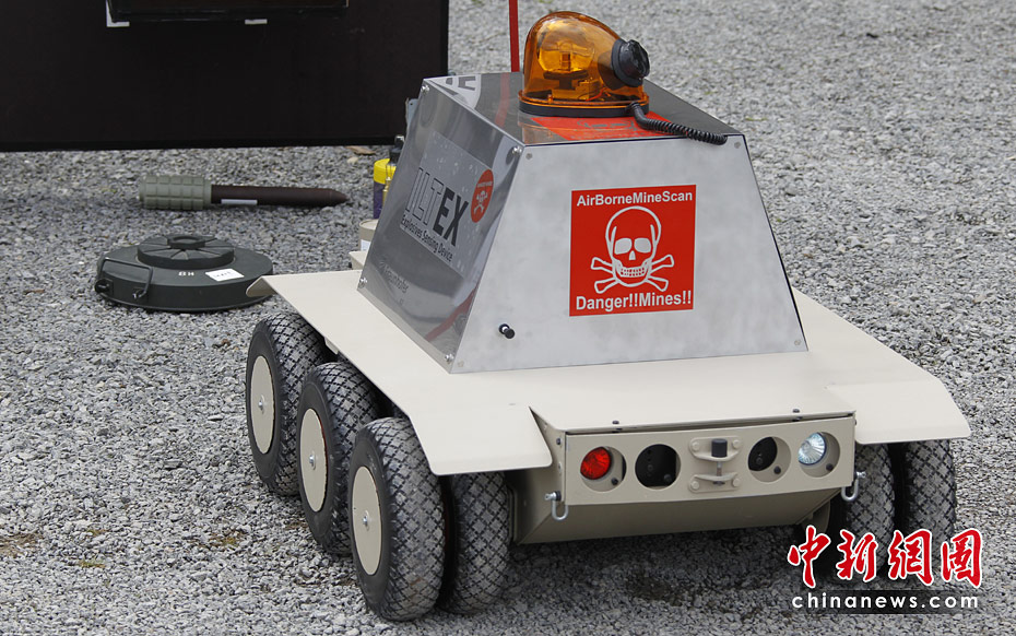 當(dāng)?shù)貢r(shí)間5月18日,德國南部哈默爾堡舉行了歐洲軍用機(jī)器人大賽。歐洲各國軍用機(jī)器人在大賽上一展身手。圖片來源:中國新聞網(wǎng)