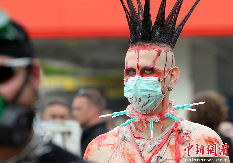 5月21日,德國萊比錫一年一度的哥特藝術節(jié)開幕。哥特節(jié)為哥特浪漫主義愛好者提供哥特式的音樂會、展覽、聚會等活動,約有2萬人參加了今年的哥特節(jié)。圖片來源:中國新聞網(wǎng)