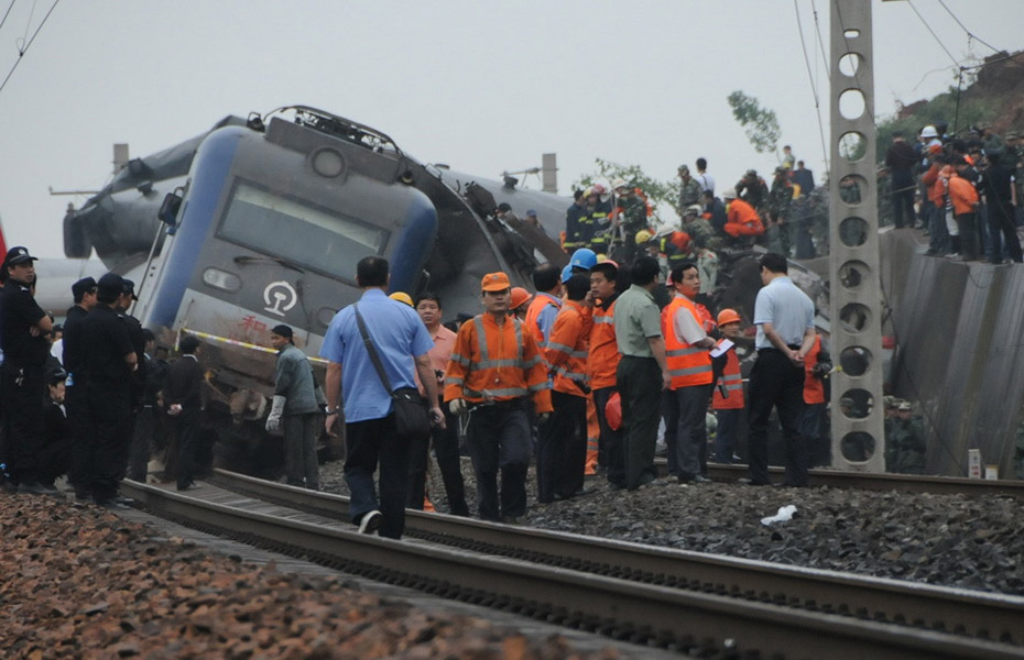 5月23日,2時10分,因連日降雨造成山體滑坡掩埋線路,由上海南開往桂林的K859次(編組17輛)旅客列車,運(yùn)行至江西省境內(nèi)滬昆鐵路余江至東鄉(xiāng)間(K699+700米處),發(fā)生脫線事故,機(jī)車及機(jī)后第1至9位車輛脫線,中斷上下行線路行車。目前,初步確認(rèn)3人死亡、10人受傷。事故正在進(jìn)一步清理中。(圖片來源:新華網(wǎng))