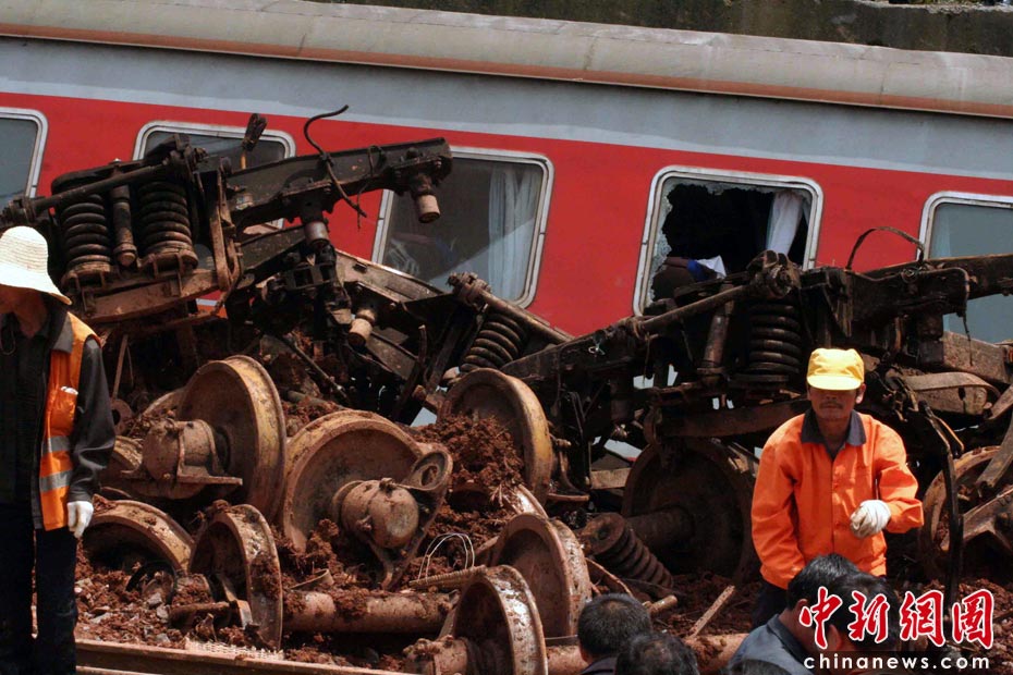 中新網(wǎng)東鄉(xiāng)5月23日電(艾永全 何柳斌 劉占昆)23日下午14時,距離滬昆鐵路客運列車脫線事發(fā)已經(jīng)12小時,武警、消防、醫(yī)護、交警、特警仍在事故現(xiàn)場緊急救援。 艾永全 攝