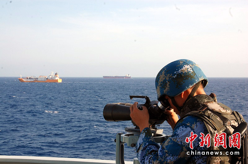 2009年1月29日,中國海軍首批護(hù)航編隊(duì)“武漢”艦收到希臘商船“ELENI G”號(hào)發(fā)出的緊急呼救。編隊(duì)立即派直升機(jī)載著特戰(zhàn)隊(duì)員前往救援,發(fā)現(xiàn)3艘海盜快艇正從不同方向圍攻希臘商船。特戰(zhàn)隊(duì)員發(fā)射信號(hào)彈,成功將其解救。船長激動(dòng)的說:“感謝上帝!感謝中國海軍!”
