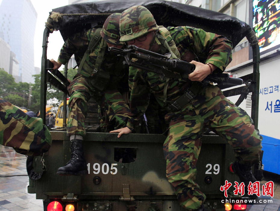 5月24日,韓國軍隊在靠近韓朝非軍事區(qū)的揚口舉行軍事演習。圖片來源:中國新聞網