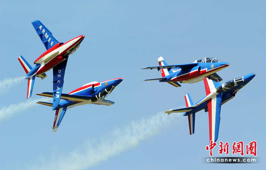 5月25日,法國巡邏兵特技飛行表演隊(duì)在普羅旺斯地區(qū)進(jìn)行驚險(xiǎn)的飛行表演。