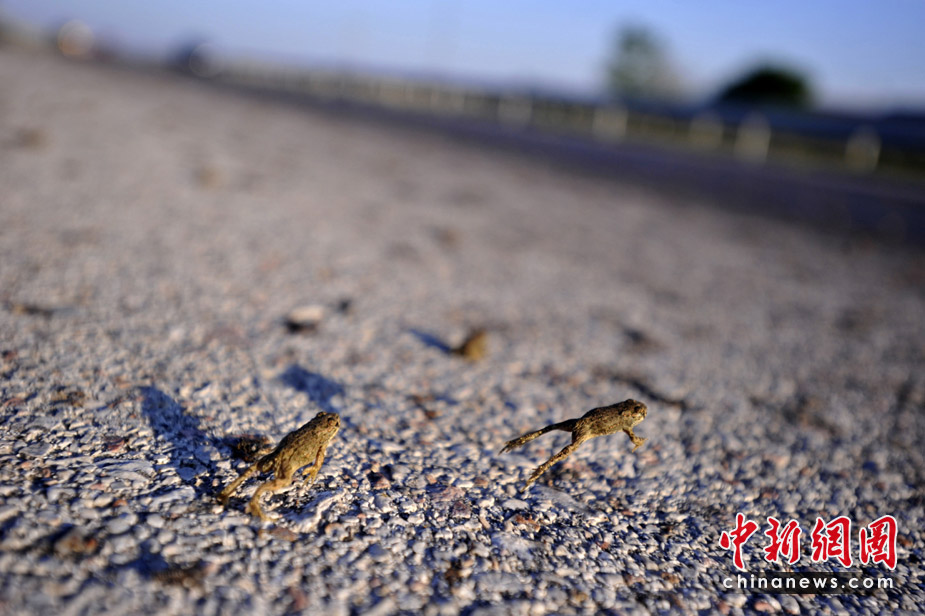 26日,希臘東北部地區(qū)的一條高速公路遭數(shù)百萬只青蛙“占據(jù)”而被迫關(guān)閉了兩個小時。希臘環(huán)保部門表示,這些青蛙可能只是在前往附近小湖找食物過程中“碰巧路過”高速公路。