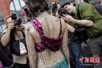 環(huán)保者灑顏料抗議漏油