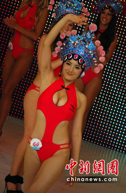5月29日晚,第35屆國際比基尼小姐全球總決賽在三亞“美麗之冠”落下帷幕,22歲的羅馬尼亞選手Diana Irina Boanca摘得冠軍?倹Q賽還評選出了四季小姐,18歲的中國選手趙茜獲得“秋季小姐”,澳大利亞、委內(nèi)瑞拉和拉脫維亞選手分別獲得春、夏、冬季小姐。共有來自世界各地的64位佳麗參加了總決賽的角逐。當晚,佳麗們展示了各自國家或地區(qū)特色的民族服飾,用不同的方式展示了不同風格的比基尼“秀”,性感迷人。 中新社記者 尹海明攝