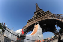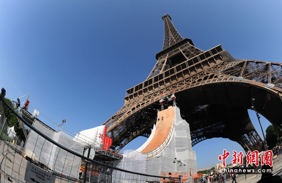 5月29日,法國巴黎,法國極限直排輪冠軍克里斯(Taig Khris)從法國艾菲爾鐵塔跳下,創(chuàng)下世界新自由落體紀(jì)錄。