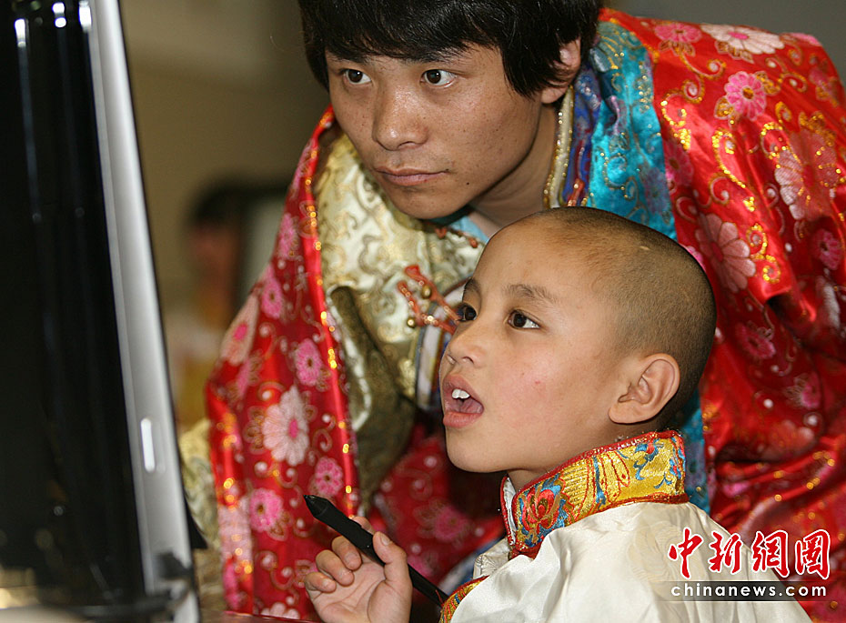5月31日,玉樹地震孤兒多杰仁青在老師的指導(dǎo)下在北京國家圖書館體驗新開通的少兒數(shù)字圖書館,迎接六一兒童節(jié)。這批玉樹孤兒共23名,于5月23日抵京,由“中華少年兒童慈善救助基金會”安置。在北京度過“六一”后,他們還將休整3個月,待災(zāi)區(qū)情況穩(wěn)定后,中華兒慈會將與當?shù)氐拿裾块T協(xié)商,在征求孤兒本人意愿的基礎(chǔ)上,或讓他們返回原地上學(xué),或者在內(nèi)地長期居住;饡䦟⒁恢敝С炙麄兊18歲成人。中新社發(fā) 蘇丹 攝