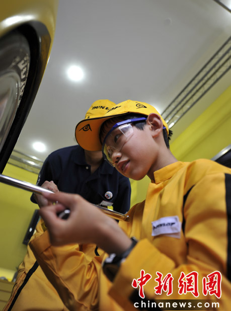 圖為孩子在體驗(yàn)賽車場(chǎng)上的技師。 中新網(wǎng)記者 王紅綱 攝