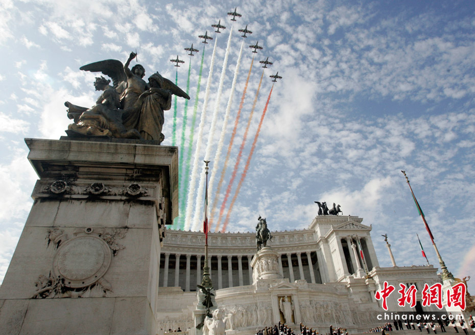 當(dāng)?shù)貢r間6月2日,意大利首都羅馬舉行盛大儀式慶祝國慶日。意大利“三色箭”飛行表演隊在首都上空進(jìn)行了飛行表演。