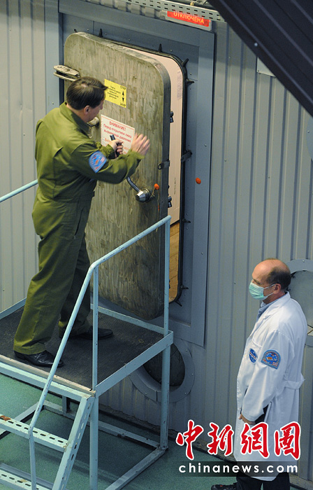 當(dāng)?shù)貢r(shí)間6月3日14時(shí),“火星-500”實(shí)驗(yàn)艙最后一道艙門關(guān)閉,人類歷史上首次模擬火星載人航天飛行試驗(yàn)就此拉開帷幕。圖片來源:中國(guó)新聞網(wǎng)