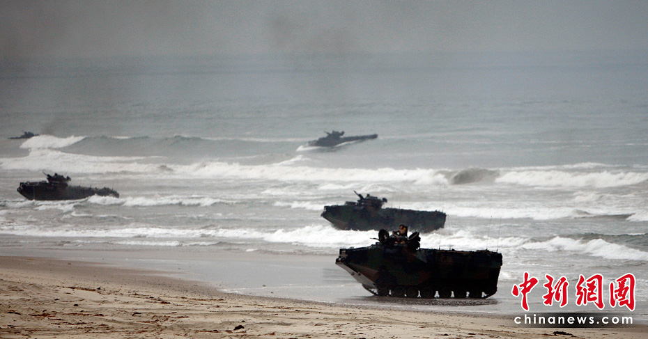 當(dāng)?shù)貢r(shí)間6月4日,約5000名水兵和陸戰(zhàn)隊(duì)員在美國(guó)加利福尼亞州舉行了代號(hào)為“黎明突擊”的搶灘登陸軍事演習(xí)。圖片來(lái)源:中國(guó)新聞網(wǎng)