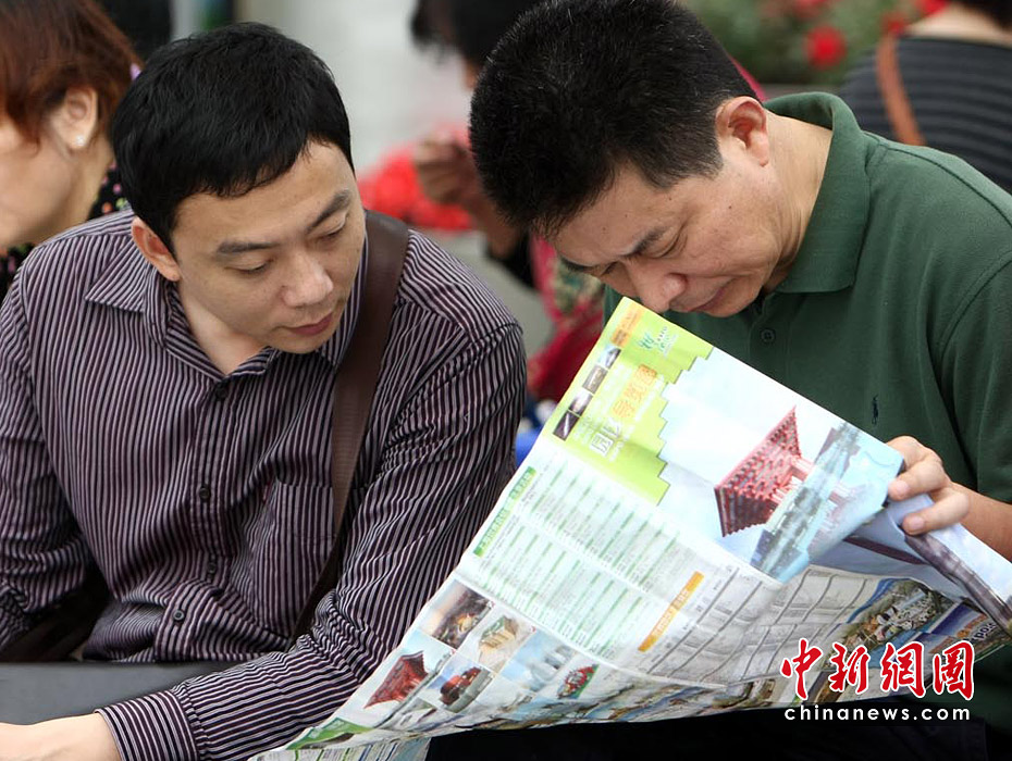 截至6月5日19點30分,上海世博會累計參觀者已超過1000萬人次。據(jù)悉,上海世博會的規(guī)劃用地為5.28平方公里,約242個國家和國際組織參展分布在浦東和浦西兩大區(qū)域。要想在這么大的地方找到自己想去的地方,那么世博地圖就是必須的裝備。圖為上海世博園內(nèi)游客正在地圖上尋找自己要去的地方。中新社記者 杜洋 攝