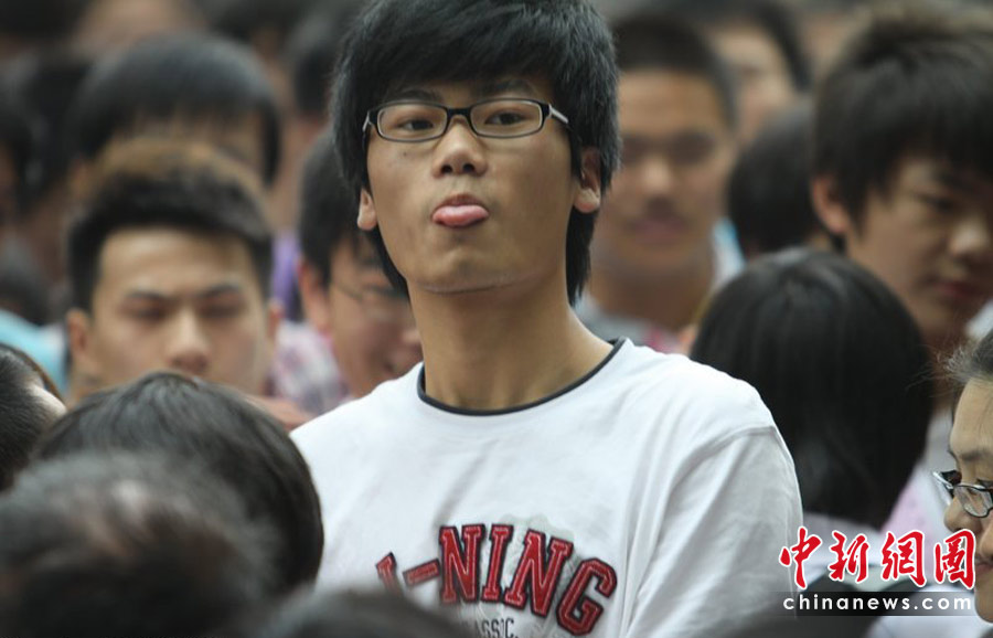 6月7日,為期兩天的2010年普通高等學(xué)校招生全國(guó)統(tǒng)一考試開(kāi)考,全國(guó)將有957萬(wàn)考生走進(jìn)考場(chǎng)。圖為6月7日,武漢,高考首場(chǎng)結(jié)束,考生輕松走出考場(chǎng)。在湖北武漢建港中學(xué)考點(diǎn),走出考點(diǎn)的高考生在尋找自己的家長(zhǎng)。孫新明 攝
