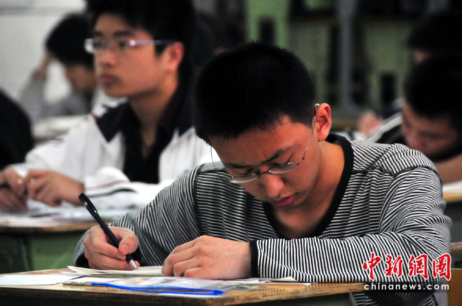 6月7日,為期兩天的2010年普通高等學(xué)校招生全國統(tǒng)一考試開考,全國將有957萬考生走進考場。圖為考生在答題。中新社發(fā) 李向雨 攝