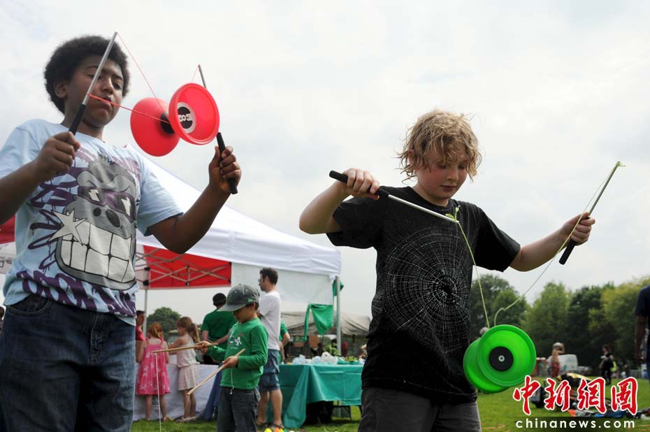 當(dāng)?shù)貢r(shí)間2010年6月6日,英國(guó)倫敦舉行卡姆登綠色市集(Camden Green Fair),這是英國(guó)倫敦每年環(huán)保領(lǐng)域的“重頭戲”。本屆市集的主旨是要喚起大眾對(duì)環(huán)境問(wèn)題的關(guān)注,選擇更加可持續(xù)發(fā)展的生活方式。據(jù)活動(dòng)主辦方預(yù)計(jì),本屆市集將吸引來(lái)自英國(guó)各地和世界各國(guó)的2萬(wàn)多人參加。圖為抖空竹是個(gè)時(shí)髦運(yùn)動(dòng)。Fiona/攝 Fiona 馬小剛/文