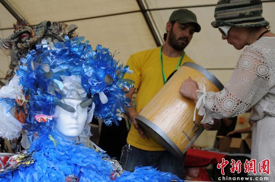 當地時間2010年6月6日,英國倫敦舉行卡姆登綠色市集(Camden Green Fair),這是英國倫敦每年環(huán)保領域的“重頭戲”。本屆市集的主旨是要喚起大眾對環(huán)境問題的關注,選擇更加可持續(xù)發(fā)展的生活方式。據活動主辦方預計,本屆市集將吸引來自英國各地和世界各國的2萬多人參加。圖為藝術家們用回收的塑料制品制作的時尚作品。仔細看還能找到“品客薯片”包裝的細微痕跡。Fiona/攝 Fiona 馬小剛/文