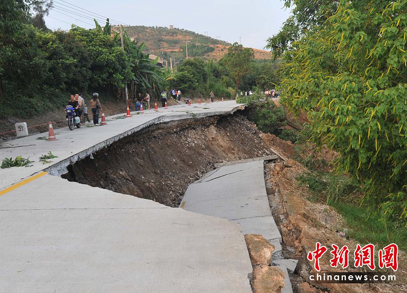 6月8日下午4點半,福建閩侯白沙鎮(zhèn)115縣道31公里處路面發(fā)生塌陷,路面整體下陷20多米,路基裂痕長達百米,所幸無人傷亡。圖片來源:CFP