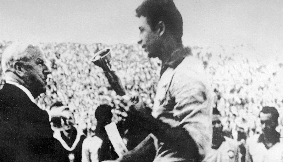 1962年世界杯在南美洲的智利舉行,巴西的頭號(hào)明星是29歲的加林查,一個(gè)綽號(hào)“小鳥(niǎo)”、雙腿天生有殘疾的人。在淘汰賽3比1擊敗英格蘭、4比2勝智利的比賽中,加林查各進(jìn)2球。世界杯結(jié)束后,巴西隊(duì)堅(jiān)持進(jìn)攻的打法征服了許多歐洲教練……