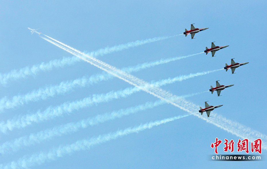2010年柏林國際航空展于當(dāng)?shù)貢r間6月8日在德國柏林舍內(nèi)費(fèi)爾德機(jī)場開幕。9日,瑞士飛行表演隊在航展上演了精彩的飛行表演。圖片來源:中國新聞網(wǎng)