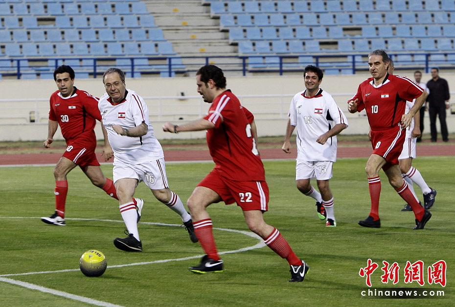 圖為2010年4月13日,黎巴嫩貝魯特,當(dāng)?shù)氐恼渭覀冞M(jìn)行一場友誼賽紀(jì)念內(nèi)戰(zhàn)爆發(fā)35周年。