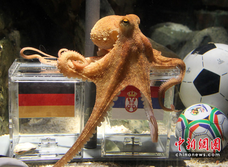 當(dāng)?shù)貢r(shí)間6月15日,德國(guó)北部,水族館里的海洋生物爭(zhēng)搶填滿飼料的足球。