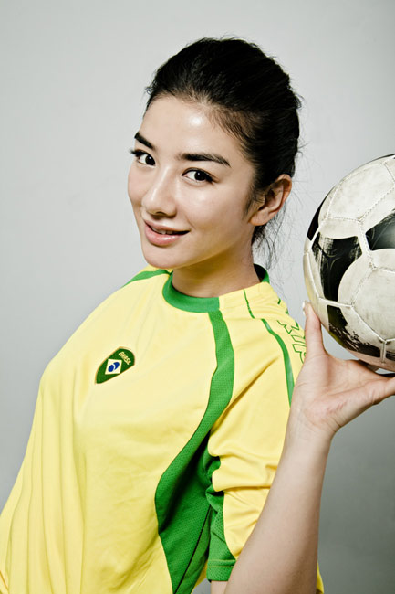 近日,黃奕身穿巴西隊(duì)球衣拍攝了一組世界杯足球?qū)懻,為南非世界杯助威喝彩?/p>