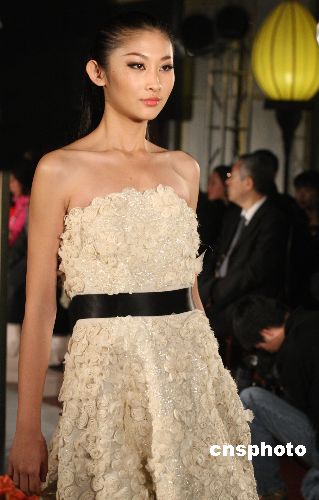 11月12日晚,MOISELLE (慕詩國際集團)慶祝成立10周年之際,特別選址于具有濃郁中國文化氣息的北京中國會(China Club) 舉行07年秋冬系列時裝發(fā)布會,MOISELLE素來以時尚設(shè)計、優(yōu)質(zhì)布料、精致造工及高雅風(fēng)格見稱,塑造出典雅及女性化的風(fēng)格,圖為模特在U形天橋上完美演繹 MOISELLE‘07秋冬系列作品。中新社發(fā) 錢興強 攝