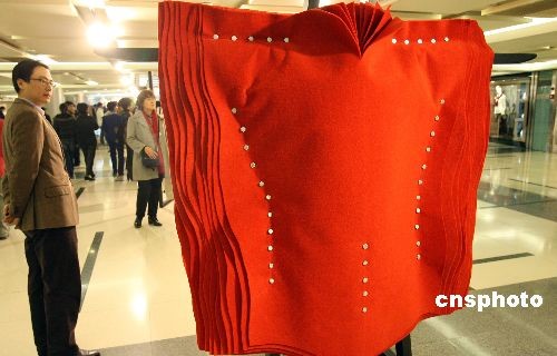 11月8日,“從哪里來——時裝藝術國際展/From Where-- Fashion Art 2008 International在北京國貿商城開幕,本次展覽共邀請10個國家和地區(qū)88位藝術家的88件作品,他們分別來自美國、法國、德國、英國、韓國、中國以及中國香港地區(qū),受邀參加本次展覽的外國藝術家有Louda larrain、Johanna braitbart、金暎仁、琴基淑、李知賢等。中新社發(fā) 錢興強 攝