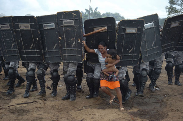 3月11日,在巴西馬瑙斯市郊,一名“無土地農(nóng)民運動組織”婦女試圖反抗武裝警察的驅(qū)逐。巴西無土地農(nóng)民組織與警察發(fā)生沖突,反抗警方將他們驅(qū)逐出自己的住所。