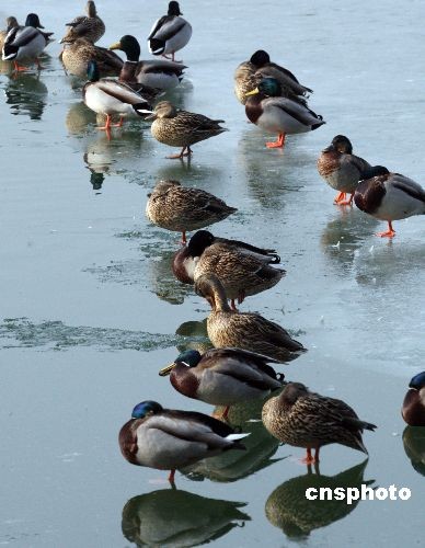 2月16日,連日溫暖的陽(yáng)光擁抱著初春的北京,北京皇家園林北海公園內(nèi)湖冰漸漸開融,幽雅的環(huán)境招來(lái)百余只野鴨子、鴛鴦飛落棲身、嬉戲,吸引眾多游客觀賞。中新社發(fā) 錢興強(qiáng) 攝