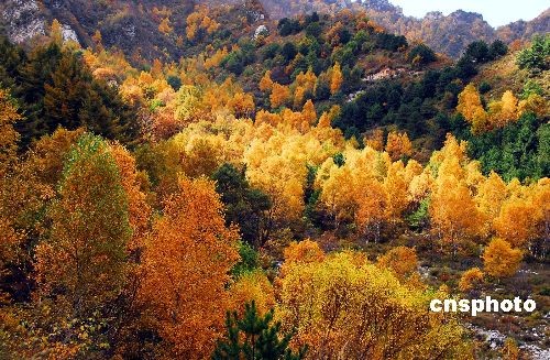世界地質(zhì)公園白石山雄居八百里太行山最北端,最高峰海拔2096米,地貌奇特,植被茂密,為中國惟一的大理巖峰林景區(qū)。每逢秋季,如詩如畫。中新社發(fā) 呂子豪 攝