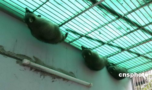 11月15日,3只食蟹浣熊在重慶鱷魚中心景區(qū)內(nèi)玩耍。據(jù)景區(qū)管理人員介紹,這些浣熊是11月初從南美引進的,這些小家伙機靈溫和,喜歡在夜間活動。中新社發(fā) 宋偉 攝