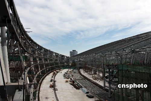 10月18日,新北京南站的鋼架結(jié)構(gòu)以基本完成,再戰(zhàn)百天以確保年底第四階段的攻堅(jiān)目標(biāo)得以實(shí)現(xiàn)。中新社發(fā) 鄭雄增 攝
