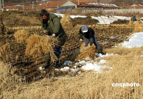 10月22日,黑龍江穆棱市河西鄉(xiāng)三興村農(nóng)民在搶出被大雪覆蓋的水稻田。近日,黑龍江省牡丹江市局部地區(qū)突遭暴雪襲擊。轄區(qū)內(nèi)的綏芬河市、穆棱市、林口縣、東寧縣等東部地區(qū),降雪量達到了大雪及暴雪的程度,部分地面積雪厚達1米以上。此次出現(xiàn)的強降雪天氣,給當?shù)剞r(nóng)民的秋收工作造成較大影響。暴雪過后,牡丹江市涉農(nóng)部門積極指導農(nóng)民開展抗災自救,將農(nóng)業(yè)生產(chǎn)的損失降到最低限度。中新社發(fā) 莊文斌 攝