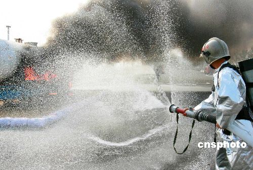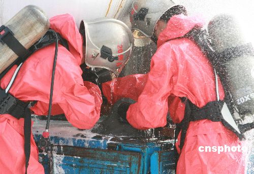 10月26日,蘇州工業(yè)園區(qū)舉行了一次針對(duì)道路運(yùn)輸危險(xiǎn)化學(xué)品事故應(yīng)急救援實(shí)戰(zhàn)演練。該區(qū)公安、消防、衛(wèi)生、環(huán)保安監(jiān)等相關(guān)部門聯(lián)合參加了此次應(yīng)急救援、快速反應(yīng)和協(xié)調(diào)作戰(zhàn)等綜合演練。中新社發(fā) 蘇秀 攝