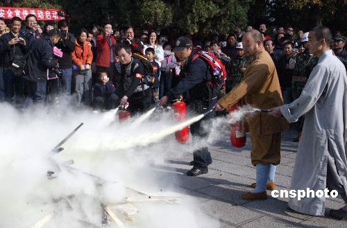 11月4日,河南省消防總隊和嵩山少林寺聯(lián)合在少林寺門前廣場舉辦以“生命至上,平安和諧”為主題的大型消防安全宣傳活動。通過現(xiàn)場滅火演練、消防知識講解等形式,引導(dǎo)公眾關(guān)愛生命,加強(qiáng)防火意識。中新社發(fā) 楊賀偉 攝
