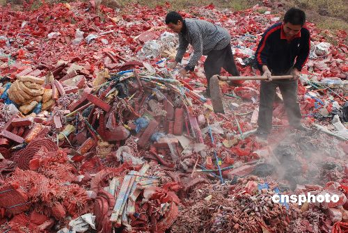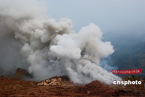 11月8日,重慶市云陽(yáng)縣集中銷(xiāo)毀了620萬(wàn)響非法生產(chǎn)和經(jīng)營(yíng)的煙花爆竹,消除了安全隱患。這些煙花爆竹是該縣在全國(guó)消防安全日前夕,對(duì)全縣43個(gè)鄉(xiāng)鎮(zhèn)進(jìn)行排查時(shí)收繳的。中新社發(fā) 劉小洋 攝