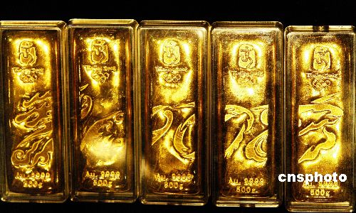 2007年11月10日,北京金博會上的全套“北京奧運金”本色系列組合成一條完整的龍亮相。據(jù)稱“龍尾”奧運金條將在本月陸續(xù)在全國上市!氨本⿰W運金”是世界上第一套具有奧運概念的紀(jì)念金條,其每組的含金量均為99.99%,按重量分為50克、100克、500克和1000克四種規(guī)格,每組限量發(fā)行2008公斤。中新社發(fā) 馬健 攝