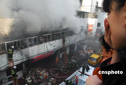 11月20日上午10時許,安徽蚌埠市區(qū)最大的小商品批發(fā)市場——太平街批發(fā)市場2號營業(yè)大廳發(fā)生火災(zāi),一層大廳2000平方米的近百攤位全部陷入火海中。一個多小時后,火勢又蔓延到二樓倉儲區(qū)。截至下午4時,余火仍在撲救中。目前沒有人員傷亡報告,經(jīng)營戶貨品財(cái)物損失很大。 中新社發(fā) 安徽張建平 攝