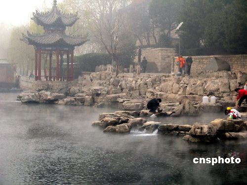 由于低溫和濕潤(rùn)的空氣,12月20日,山東濟(jì)南眾泉出現(xiàn)“云霧潤(rùn)蒸”景象,大片水汽從泉水和護(hù)城河水面升起。據(jù)悉,該景觀一般出現(xiàn)在冬季特殊天氣。中新社發(fā) 周青先 攝