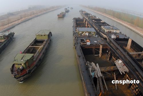 12月22日,上百艘船只開(kāi)始過(guò)閘。當(dāng)日,被譽(yù)為“江北第一閘”的京杭運(yùn)河山東臺(tái)兒莊船閘汽笛爭(zhēng)鳴,百舸爭(zhēng)渡上演“過(guò)閘大戲”。由于連日濃霧,能見(jiàn)度不足20米,萬(wàn)年船閘和臺(tái)兒莊船閘全線停止放船,上百艘船只滯留在航段內(nèi)。中新社發(fā) 高啟民 攝