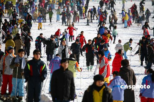 12月31日,北京市民在北京懷北國際劃雪場劃雪玩耍。當天是2007年最后一天,許多北京市民來到京郊劃雪場感受劃雪魅力,迎接新年到來。中新社發(fā) 卜向東 攝