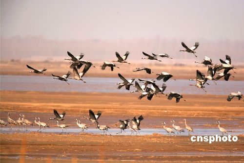 一月四日,大批灰鶴在鄭州黃河濕地棲息。灰鶴屬于國(guó)家級(jí)二級(jí)保護(hù)動(dòng)物,全世界約有一萬(wàn)只以上,近日,在鄭州黃河濕地保護(hù)區(qū)觀測(cè)到灰鶴六百一十二只,屬首次在這里發(fā)現(xiàn)。中新社發(fā) 慎重 攝